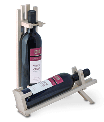 termékszám: Asztali bortartó tömör fenyőfából, kérésre pácolva, lakkozva, logózva. |